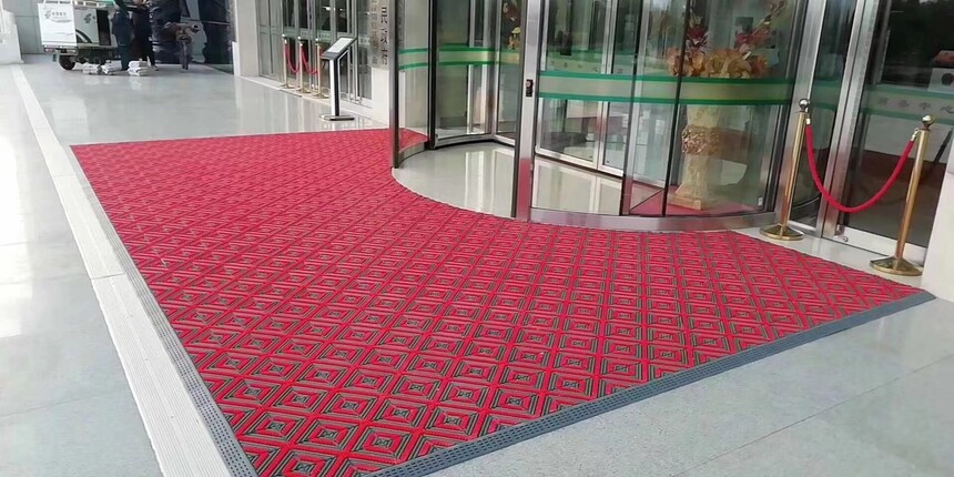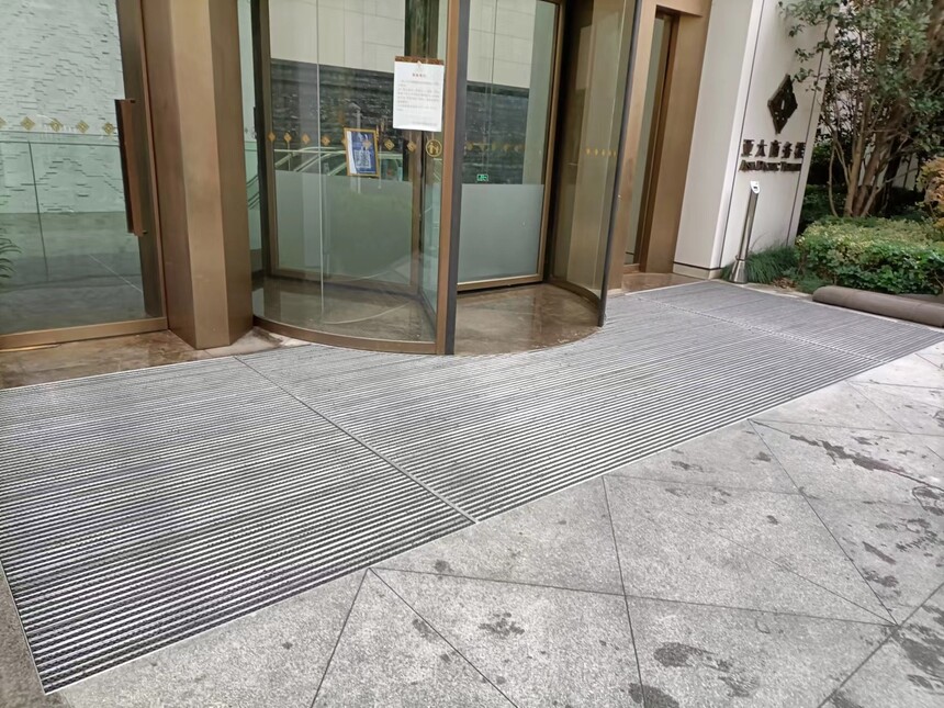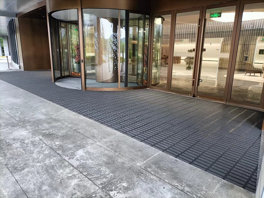 星級酒店的地墊該如何選擇?时间:2022-02-17 地墊是一個酒店的門面,特別是對于人流量大的星級酒店而言。它不但能起到刮沙除塵吸水的作用,給酒店人員減輕工作負擔,而且更能彰顯一座酒店的氣質。好的一款地墊讓來客賞心悅目,從而對酒店服務的充滿期望。 但地墊種類繁多,星級酒店該如何選擇呢。通常一座星級酒店的樓宇建筑面氣勢磅礴、大氣,大門采用四門兩開,中間旋轉門設計,可直通酒店大堂。在外側可以采用環弧鋪設方式,這樣整體給人的視覺沖擊強烈,氣勢恢宏,如下款: